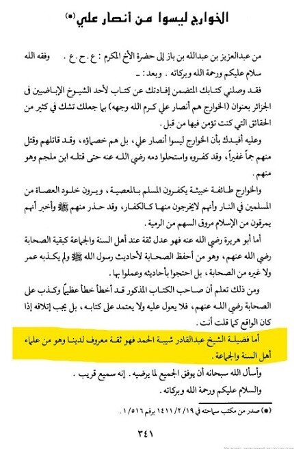 — Во сяком случае нет сомнений, что ученые аль-ляджны и комитета старейших все они известные люди. Я скажу: путь саляф в вопросе имана известный, и дела входят в определения имана».