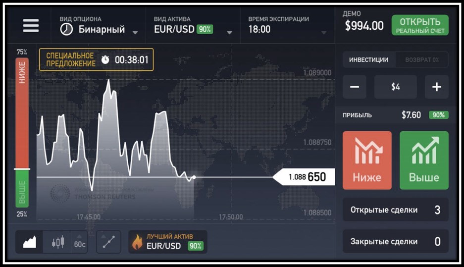 4) Предлагается сделать ставку на рост или падение какого-нибудь инструмента.