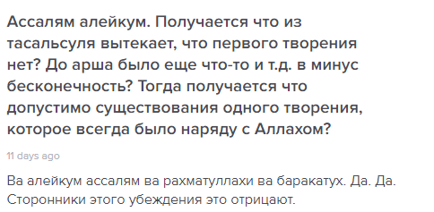 — Зейд: Выходит кроме Аллаhа еще что-то вечное?