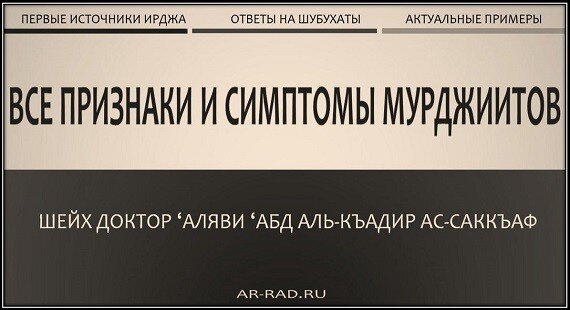 Все признаки муржиитов и хариджитов. Уважаемый шейх ‘Аляви ‘Абд аль-Къадир ас-Сакккъаф, специализирующийся по вопросам акъиды, предисловием которому делал сам Ибн Баз, да помилуете его Аллаh, а также главный директор научного учреждения «Дорар», составил список симптомов и признаков мурджиитов и хариджитов.