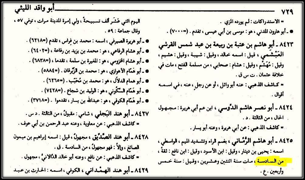 Абу Хашим как раз таки в шестой по меркам Ибн Хаджара.