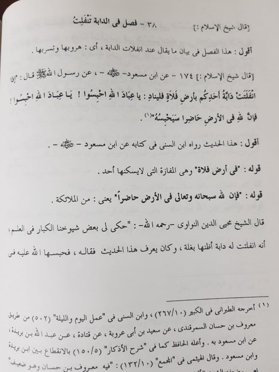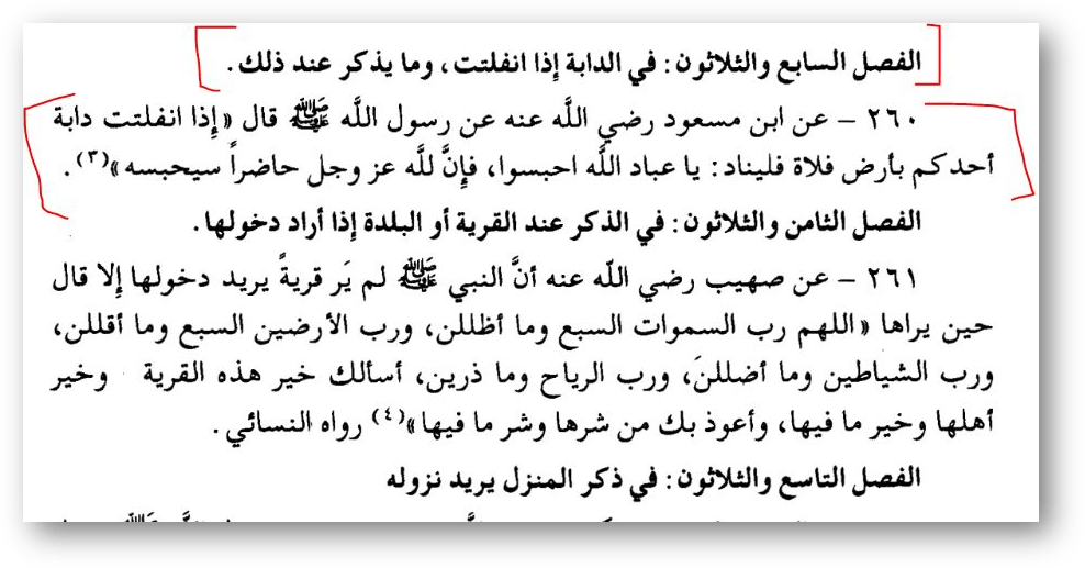 в котором слова благословенного Мухаммада صلى الله عليه وسلم : «Я посланник Аллаха, Который … когда ты будешь в пустынном месте и потеряется от тебя твоё верховое животное, то ты взываешь к Нему и Он вернёт его к тебе.»