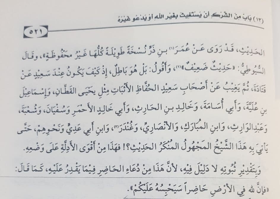 Отсюда вопрос всем такфиритам: если-бы матн содержал ширк, зачем тогда искать иснад?! Если бы он нашел иснад, значит он претворял бы этот ширк?