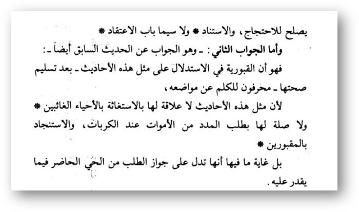 • Глупое утверждение, мол этот хадис открывает двери к фитне. Мол это лишь в пользу могилопоклонникам! С каких пор этот хадис подкрепляет их ширк, если в нашем хадисе обращение к присутствующему, а суфии къубуриты взывают к отсутствующему?! В чем здесь доказательство для них?