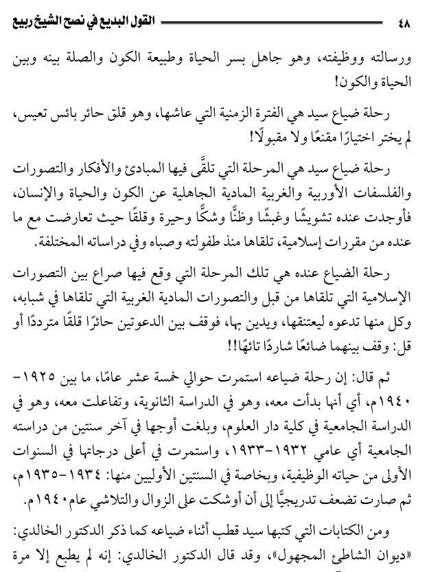 Уважаемый член комитета старейших, а также член Ляджны, шейх Бакр Абу Зейд, тоже обратил внимание на то, что Раби’ приписывает Сейид Къутбу старые его взгляды, зная, что Сейид оставил их.