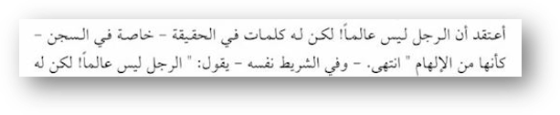 ≡ Шейх аль-Альбани также сказал: «Я убежден, что он не был теологом, однако у него есть слова, особенно написанные им в тюрьме, словно они внушение сверху…»