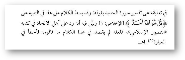 ≡ Шейх ‘АбдуЛлаh ад-Дувейш в «Аль-Маурид аз-Залляль», в комментариях к суре «аль-Хадид» сказал: «Он (Сейид) пространно изложил речь в примечаниях к «Скажи, он Аллаh един» и объяснил, что в этом (аяте) опровержение безбожникам в свой книге «Исламское представление». Вероятно он не подразумевал то, что они сказали, он лишь ошибся в выражении».