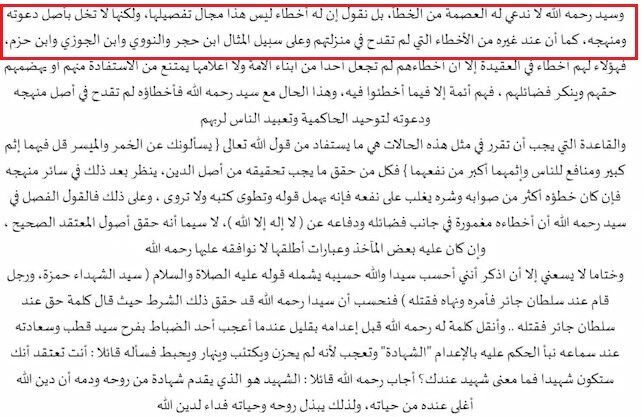 • Во-вторых: шейх не сделал сравнение между Сейид Кутбом и упомянутыми имамамы в уровне знаний, речь шла о том, что если такой как Ибн Хаджар допустил этот вид шибки, то Сейид Кутб тем более допустит!
