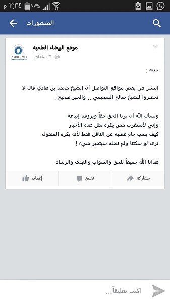 «В некоторых соц.сетях распространилась новость, что шейх Мухаммад бин Хади (аль-Мадхали) сказал: «Не посещайте уроки Салиха ас-Сухейми». Новость достоверна».
